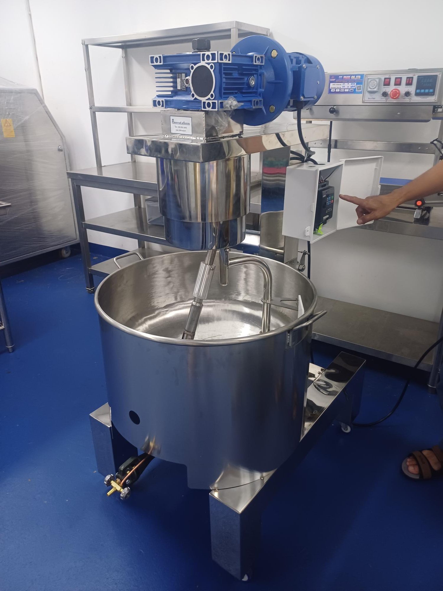 สนใจเครื่องกวน เครื่องกวนไส้ เครื่องกวนไส้ขนม เครื่องกวนผสม เครื่องกวนอเนกประสงค์ กระทะกวนไส้ขนม ถังผสมครบวงจร Agitator Mixer