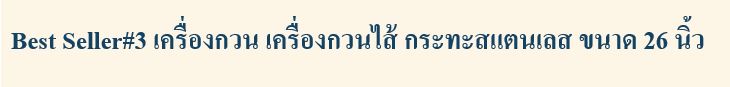 เครื่องกวน เครื่องกวนไส้ ขนาด 26 นิ้ว Stirring Machine size 26 inches ตัวเครื่องกวนทั้งเครื่อง แกนก้านกวนทำจากสแตนเลส 304 คุณภาพดี ไม่เป็นสนิม (Rustless ) ทำความสะอาดง่าย ( Easy to Clean )ไม่เก็บกลิ่น ผิวจะมีความเงามันวาวไม่ด้าน ทำให้เมื่อมีคราบสกปรกมาเกาะติด เวลาใช้น้ำแรงๆฉีดหรือเช็ดออก จะทำให้คราบสกปรกหลุดร่อนได้อย่างง่ายดาย มีคุณสมบัติที่ป้องกันแบคทีเรียไม่ให้มาเกาะหรืออาศัยอยู่ได้ สามารถวางไว้ได้ทั้งในและนอกอาคาร แข็งแรงทนทาน ทนความร้อนหรือความเย็นได้ดี และมีความทนไฟ ( Durable ) บำรุงรักษาง่าย มีความสวยงามเพราะสแตนเลสมีความเงางาม สามารถทนทานต่อการกัดกร่อนได้ดี มีความปลอดภัยสูงและมีความถูกสุขลักษณะ