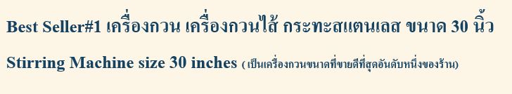 เครื่องกวน เครื่องกวนไส้ ขนาด 30 นิ้ว Stirring Machine size 30 inches ตัวเครื่องกวนทั้งเครื่อง แกนก้านกวนทำจากสแตนเลส 304 คุณภาพดี ไม่เป็นสนิม (Rustless ) สามารถวางไว้ได้ทั้งในและนอกอาคาร แข็งแรงทนทาน ทนความร้อนหรือความเย็นได้ดี และมีความทนไฟ ( Durable ) บำรุงรักษาง่าย มีความสวยงามเพราะสแตนเลสมีความเงางาม สามารถทนทานต่อการกัดกร่อนได้ดี มีความปลอดภัยสูงและมีความถูกสุขลักษณะ ทำความสะอาดง่าย ( Easy to Clean )ไม่เก็บกลิ่น ผิวจะมีความเงามันวาวไม่ด้าน ทำให้เมื่อมีคราบสกปรกมาเกาะติด เวลาใช้น้ำแรงๆฉีดหรือเช็ดออก จะทำให้คราบสกปรกหลุดร่อนได้อย่างง่ายดาย มีคุณสมบัติที่ป้องกันแบคทีเรียไม่ให้มาเกาะหรืออาศัยอยู่ได้