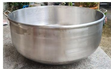 ใช้กระทะสแตนเลสขอบม้วนก้นลึก กวนได้ครั้งละมากๆ มีให้เลือก 4 ขนาด คือขนาด 20,24,26 และ 30 นิ้ว